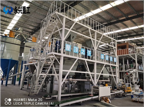 此套年产10万吨石膏砂浆生产线配备了原料储存系统、原料自动配料系统、输送系统、混合系统、包装系统和自动码包系统,可适用于内外墙保温砂浆、砌筑砂浆、粘接砂浆、抗裂砂浆、自流平砂浆、瓷砖胶、腻子粉、涂料、化工等干粉物料的混合生产,全套生产线设计合理,技术成熟,经过简单培训即可操作。